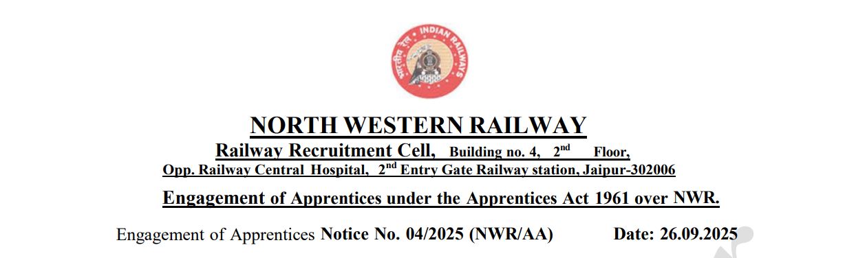 North Western Railway (NWR), one of India’s key railway zones headquartered in Jaipur, Rajasthan, oversees operations across states like Rajasthan, Gujarat, and parts of Haryana and Punjab. NWR Apprentice Recruitment 2025 is a merit-based initiative under the Apprentices Act, 1961, aimed at training fresh talent in technical trades. This recruitment fills 2162 vacancies in various …